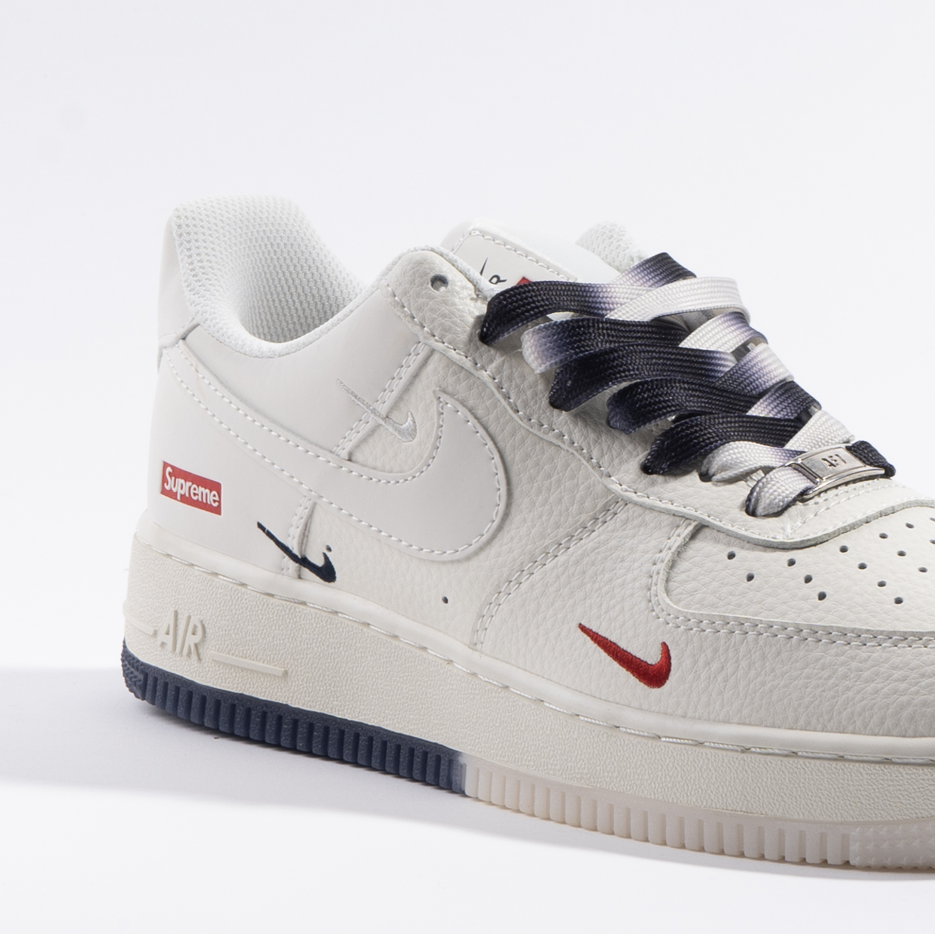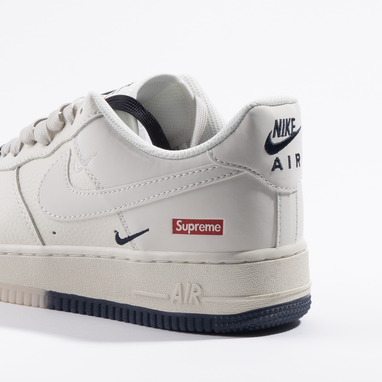 اسنیکر نایک ایرفورس شیری با جزئیات قرمز و با متریال فوم و چرم از همکاری متفاوت نایکی و سوپریم بوده.
