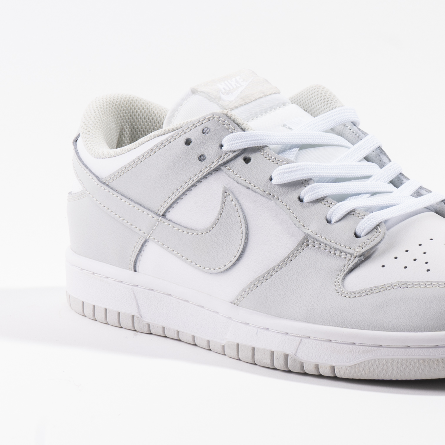 اسنیکر نایک دانک ساق کوتاه طوسی با جزئیات سفید و از متریال فوم ساخته شده. استفاده از رنگ طوسی که جزو رنگ‌های محبوب امسال بوده این کفش رو به یکی از اسنیکر‌های جذاب ۲۰۲۵ تبدیل کرده